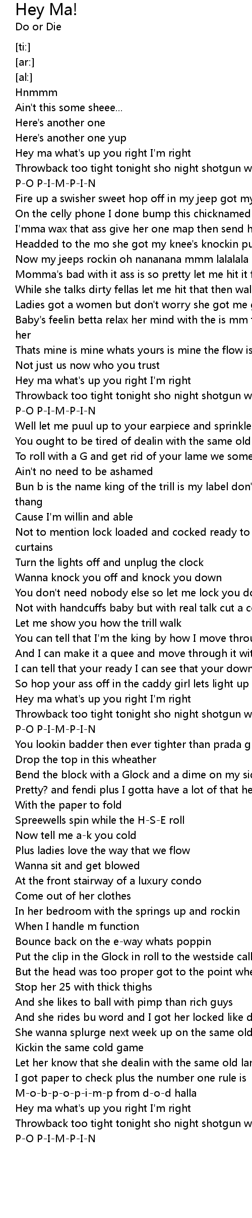 Now my jeeps rockin oh nananana mmm lalalala |