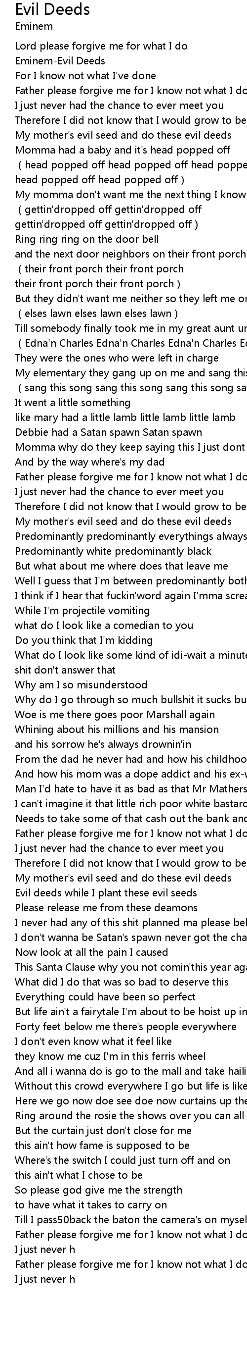 | [00:11.33] | Eminem-Evil Deeds |