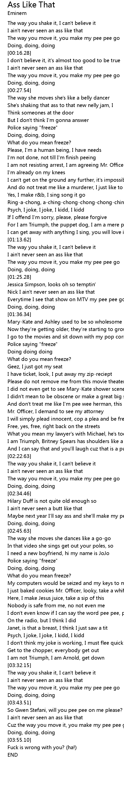 And do not treat me like a murderer, I just like to pee, pee, pee |