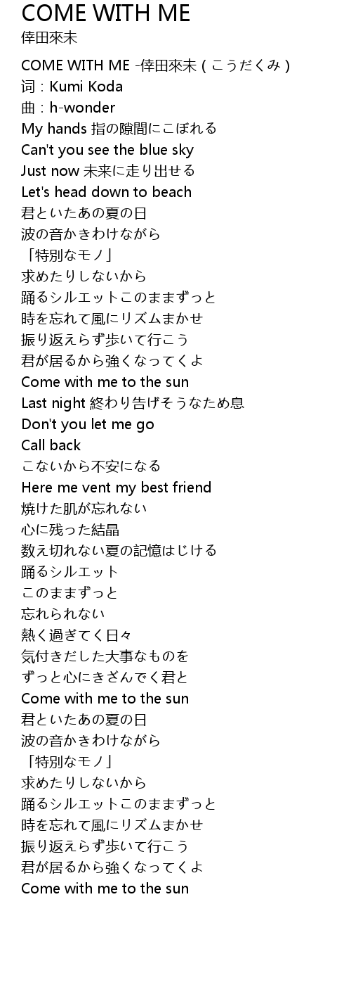 | [00:00.203] | COME WITH ME -倖田來未(こうだくみ) |