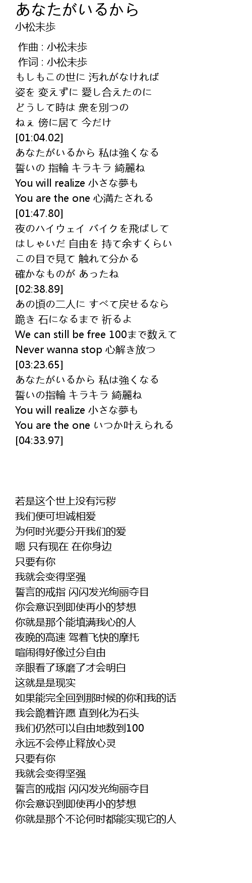 | [03:43.64] | あなたがいるから 私は強くなる |