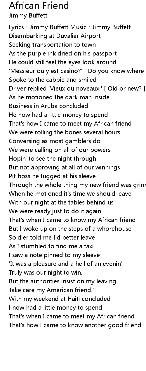 | Lyrics: Jimmy Buffett Music: Jimmy Buffett | |