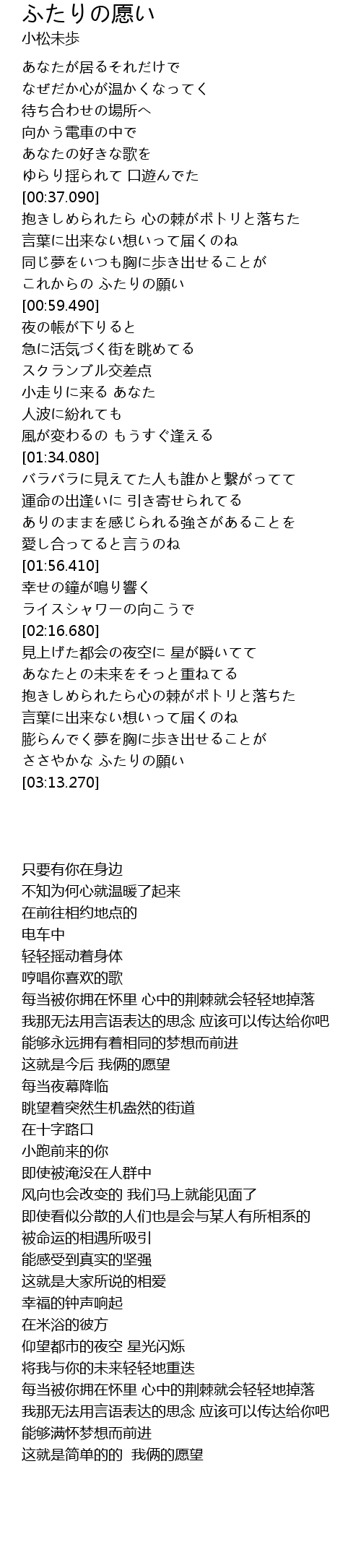 | [00:55.210] | これからの ふたりの願い |