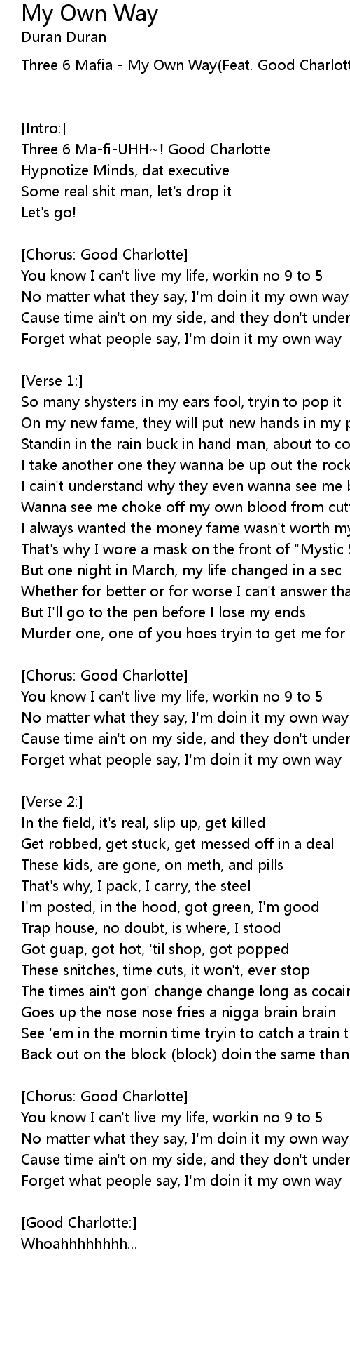 Three 6 Mafia - My Own Way(Feat. Good Charlotte)