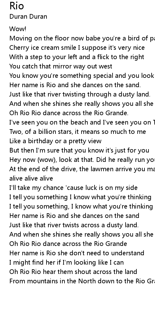 Oh Rio Rio dance across the Rio Grande |