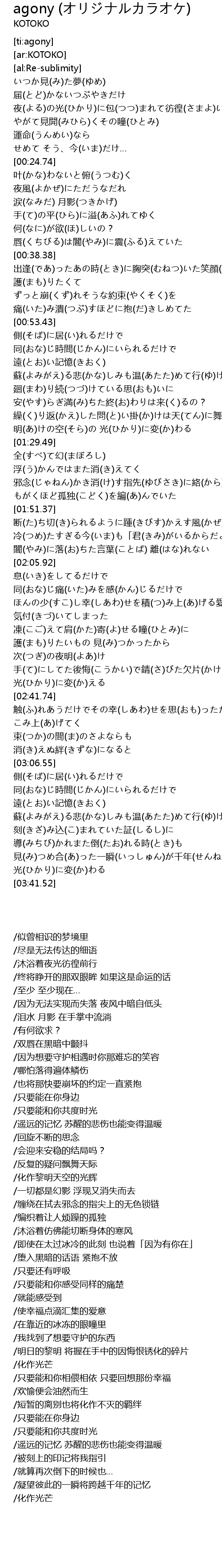 | [01:41.81] | /缠绕在拭去邪念的指尖上的无色锁链 |