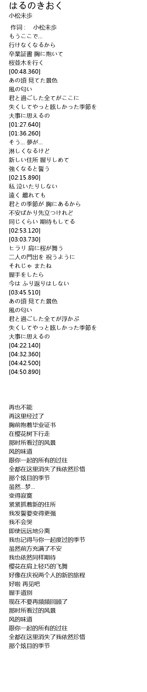 | [00:34.660] | 卒業証書 胸に抱いて |