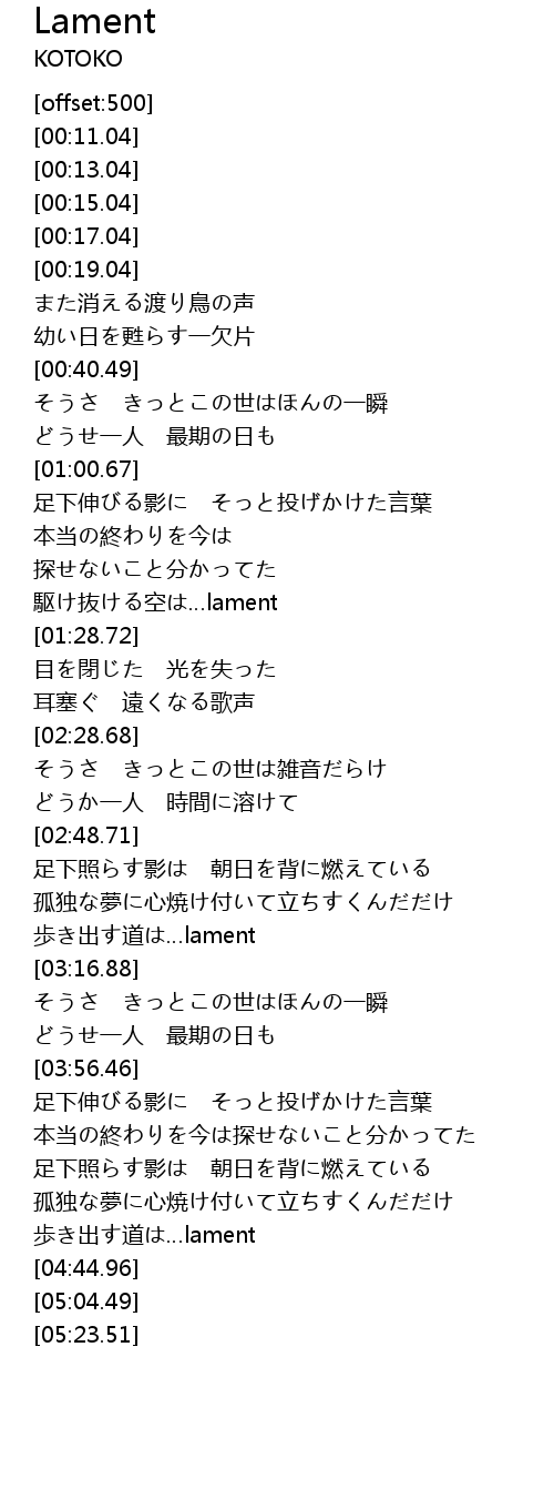 | [04:39.11] | 歩き出す道は…lament |