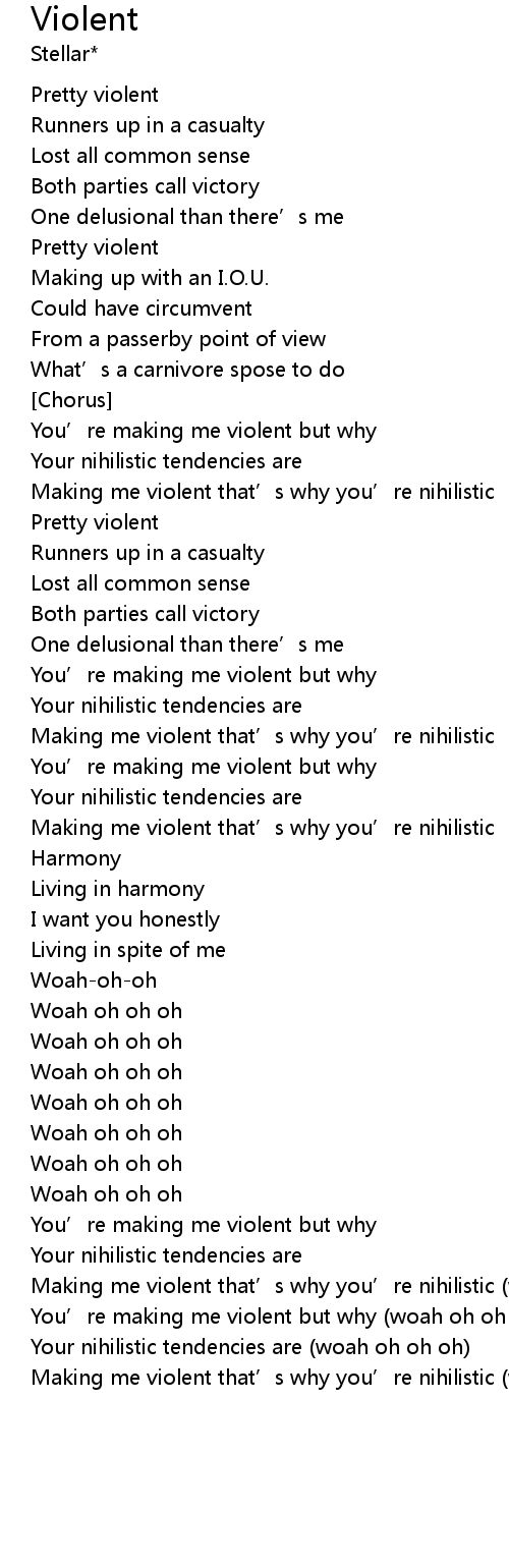 | You' re making me violent but why woah oh oh oh | |