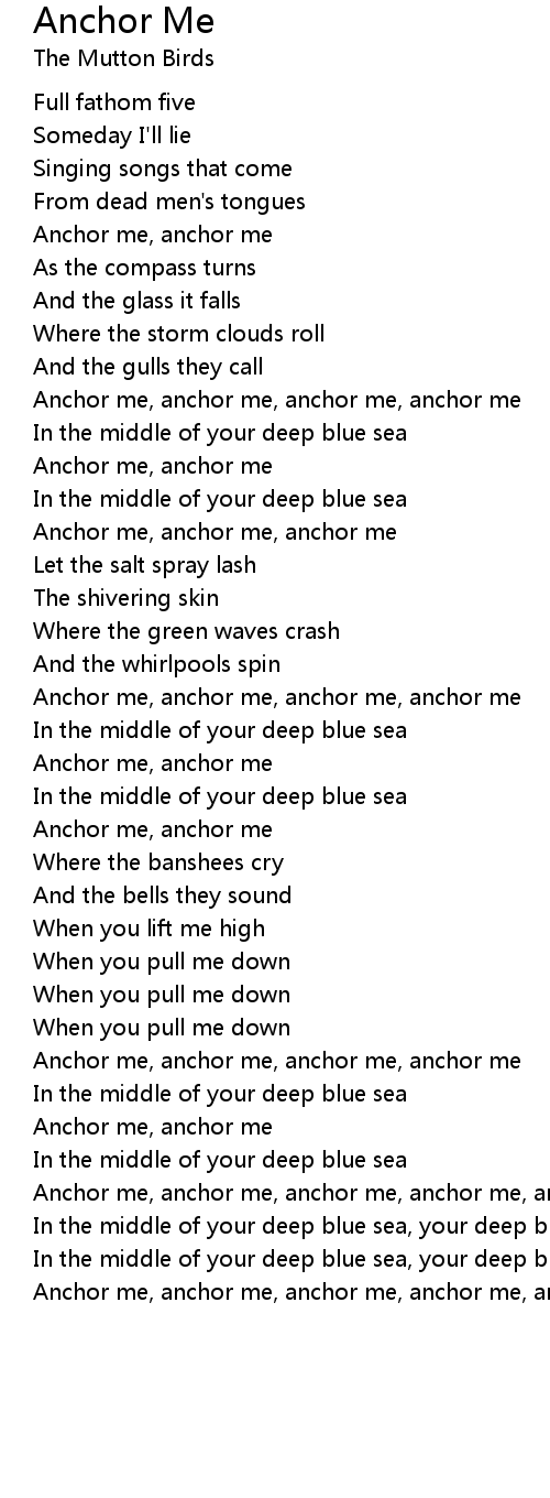 Anchor me, anchor me, anchor me, anchor me, anchor me |