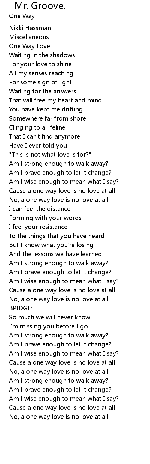 Cause a one way love is no love at all |