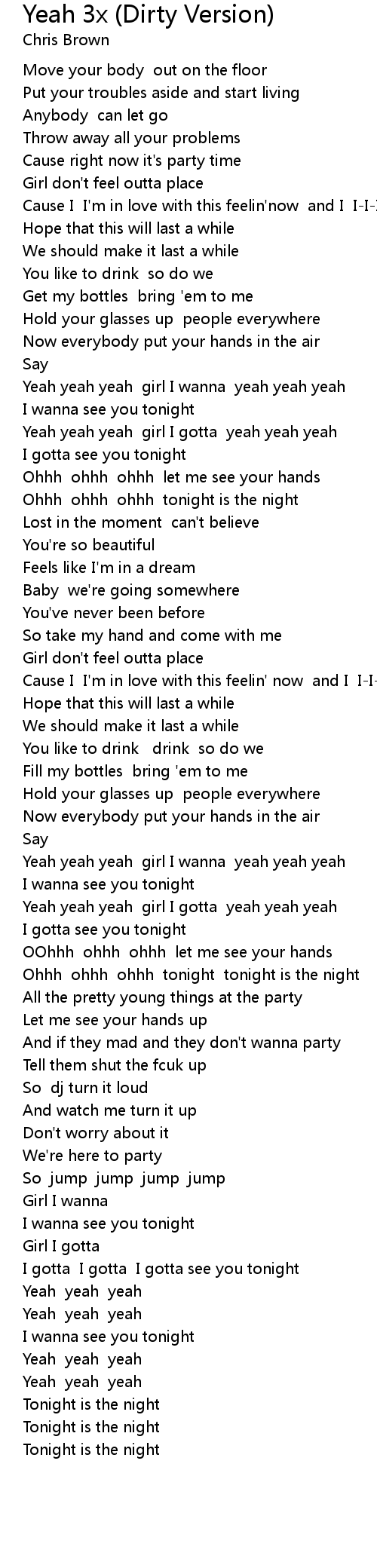 Yeah yeah yeah girl I gotta yeah yeah yeah |