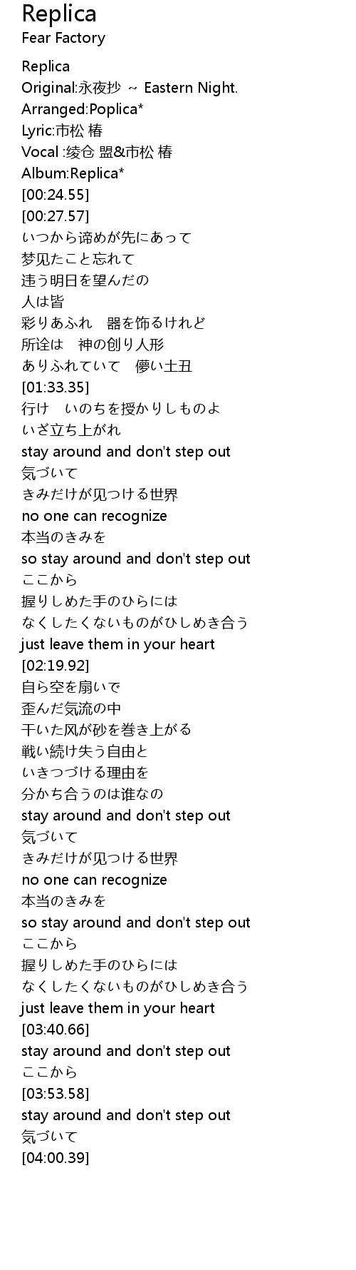| [00:21.23] | Album: Replica |