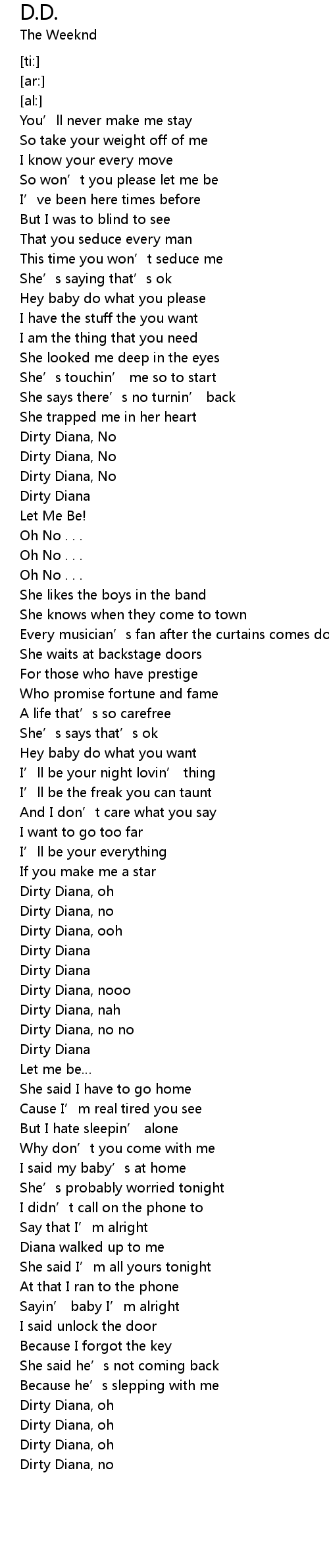 | [03:34.56] | Dirty Diana, oh |