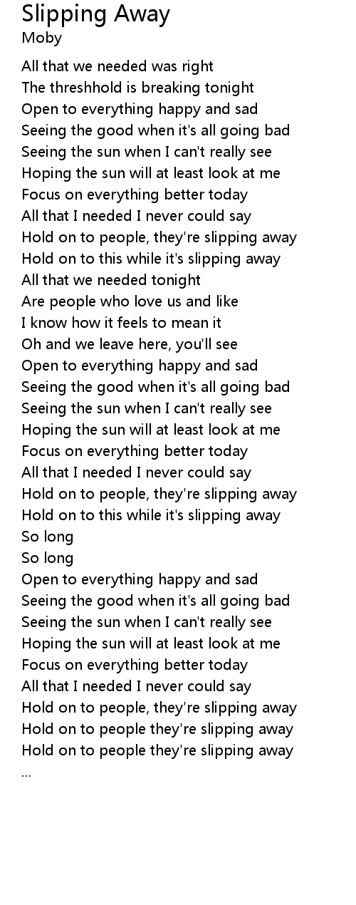 Hold on to this while it's slipping away |