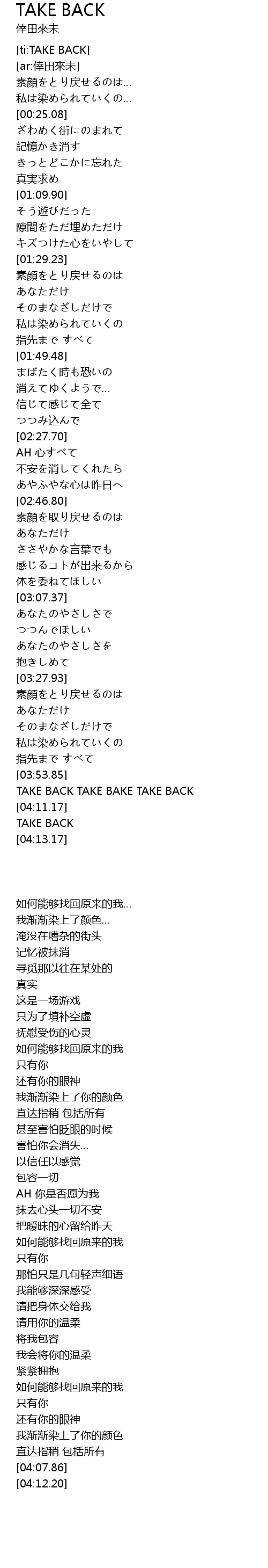 | [04:07.86] | TAKE BACK TAKE BAKE TAKE BACK |