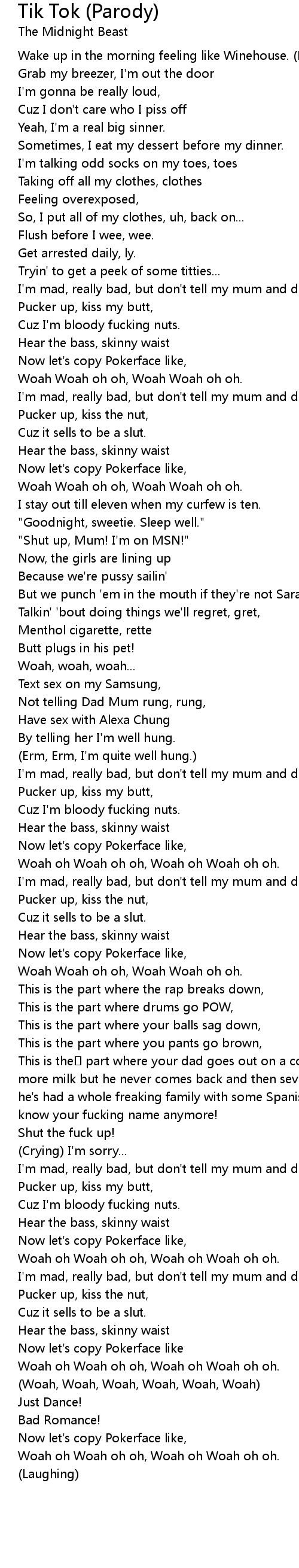| 歌曲 | Tik Tok (Parody) |
