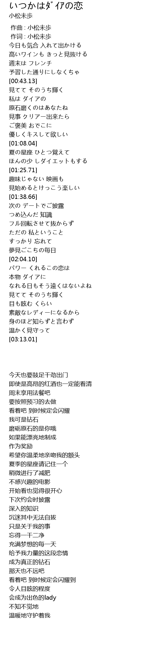 | [00:01.00] | 作词 : 小松未歩 |