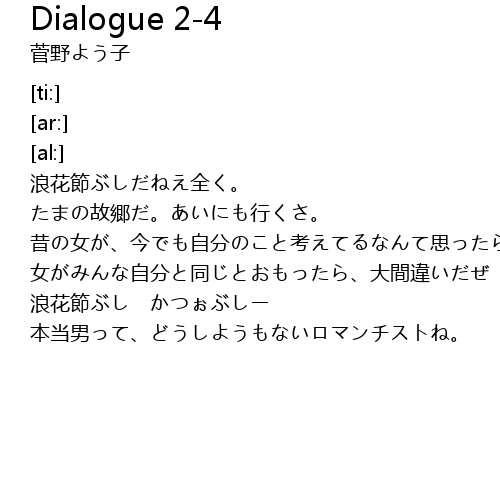 | [00:00.00] | 浪花節ぶしだねえ全く。 |