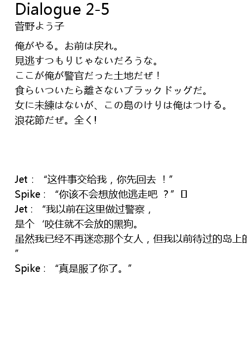 | [00:05.14] | Spike : “你该不会想放他逃走吧 ?” |