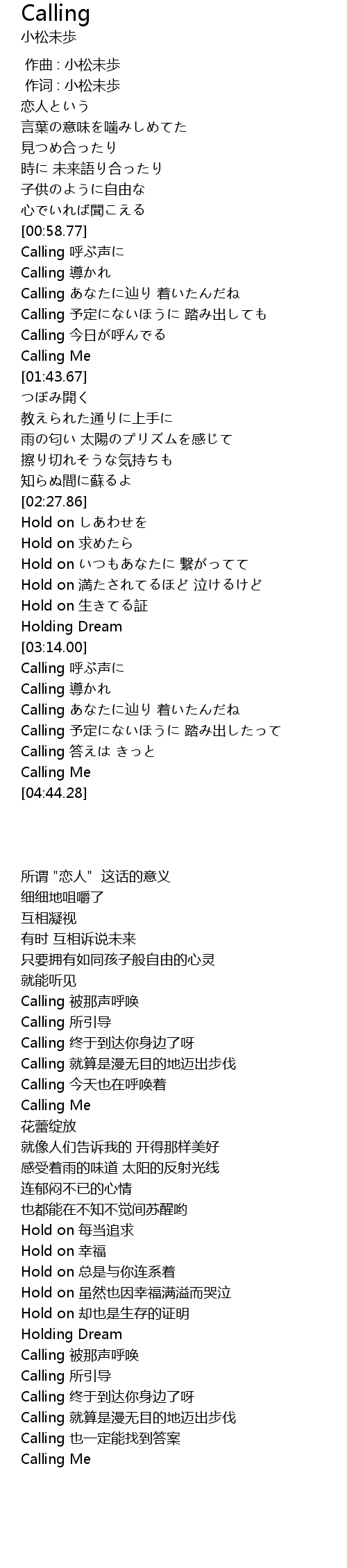 | [04:03.00] | Calling 答えは きっと |
