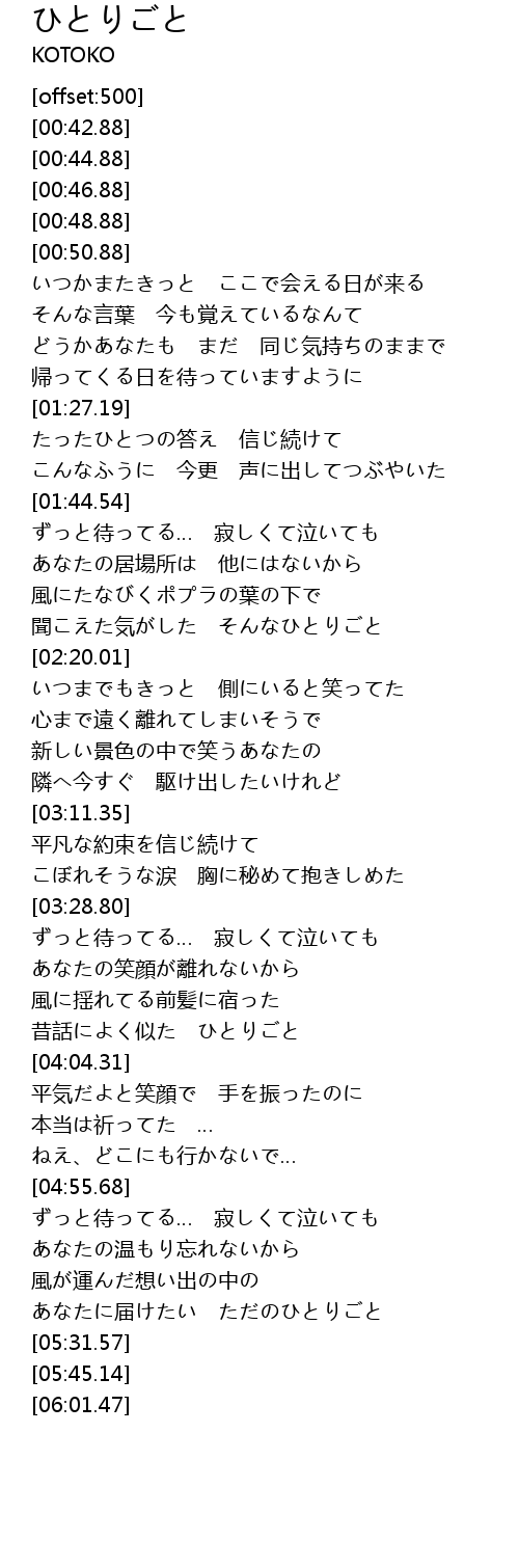 | [05:20.96] | あなたに届けたい ただのひとりごと |