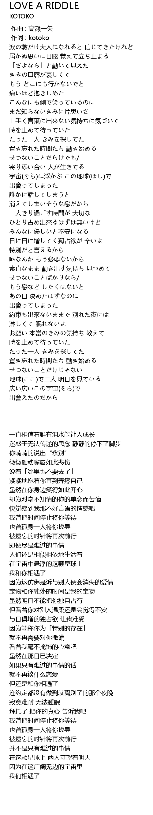 | 歌曲 | LOVE A RIDDLE |