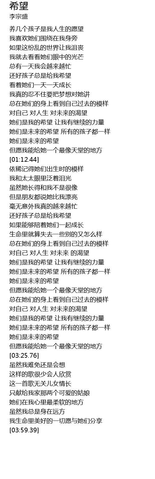 | [02:00.07] | hai hao hai zi zong shi gei wo xi wang |