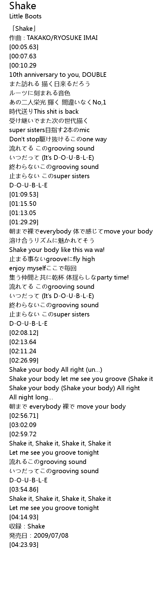 | [00:12.55][00:07.63] | Shake it, Shake it, Shake it, Shake it |