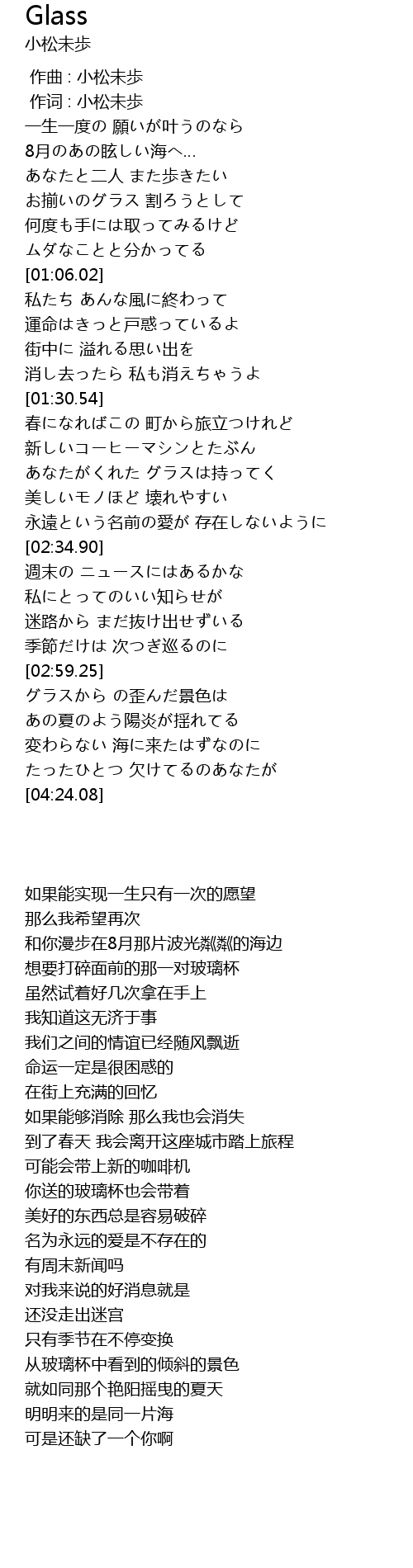 | [00:44.95] | お揃いのグラス 割ろうとして |
