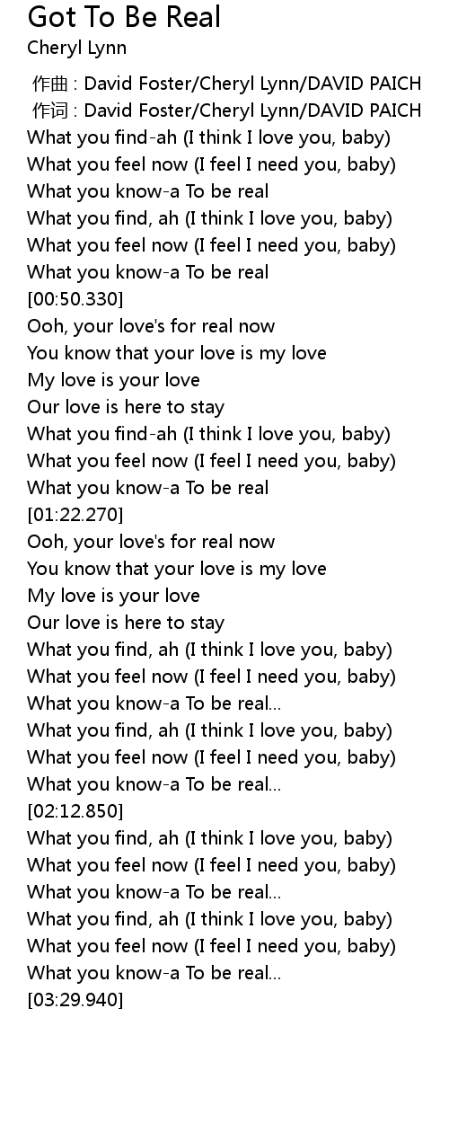 | 歌曲 | Got To Be Real |