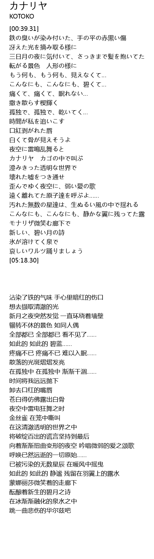 | [03:00.82] | カナリヤ カゴの中で叫ぶ |