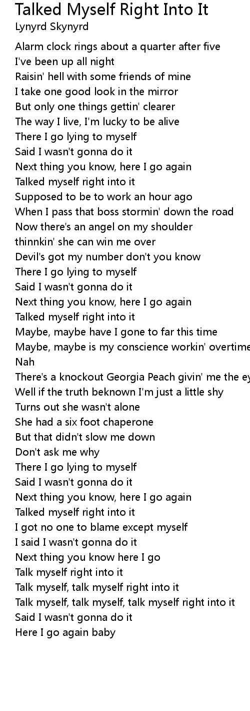 Talk myself, talk myself right into it |