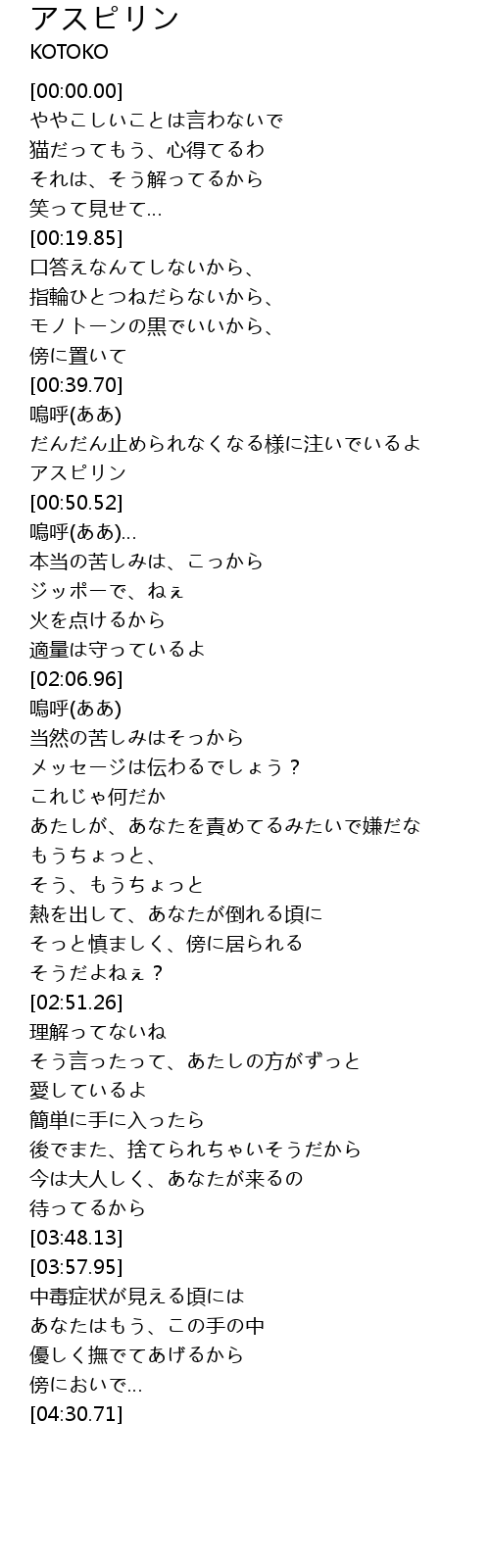 | [00:49.43] | アスピリン |