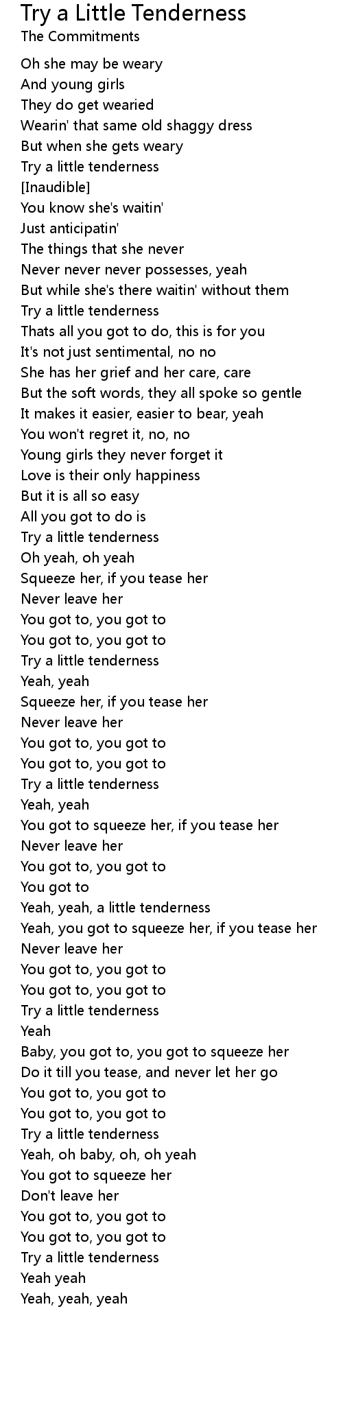 Try a little tenderness |