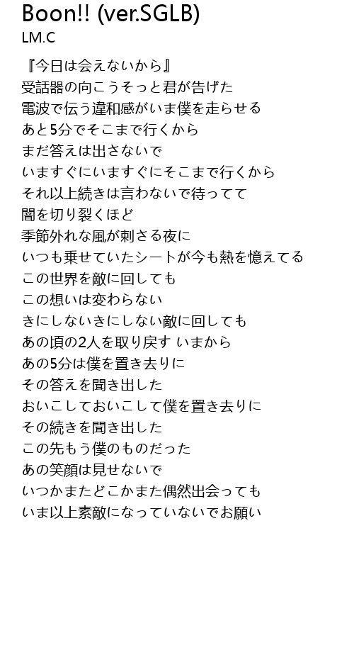 | 歌曲 | Boon!! (ver.SGLB) |