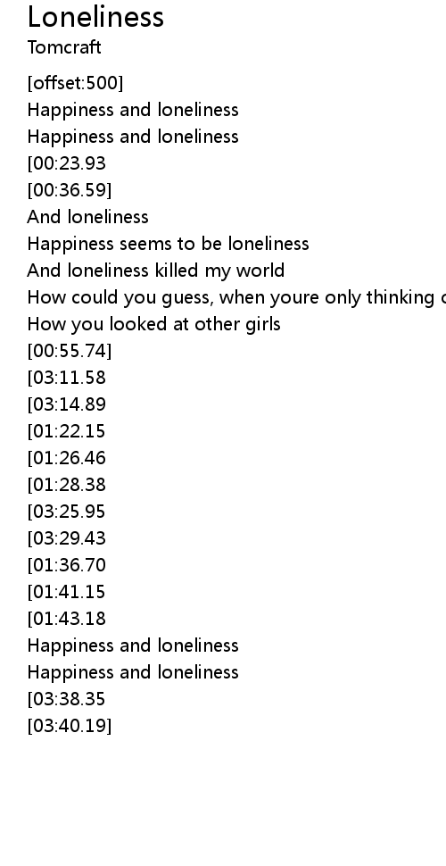 [03:36.72][03:29.43][02:45.79][01:33.00] And Loneliness kills my world