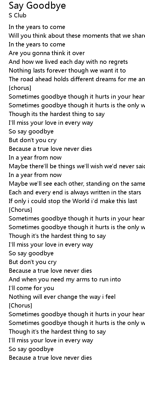 Sometimes goodbye though it hurts is the only way now for you and me |