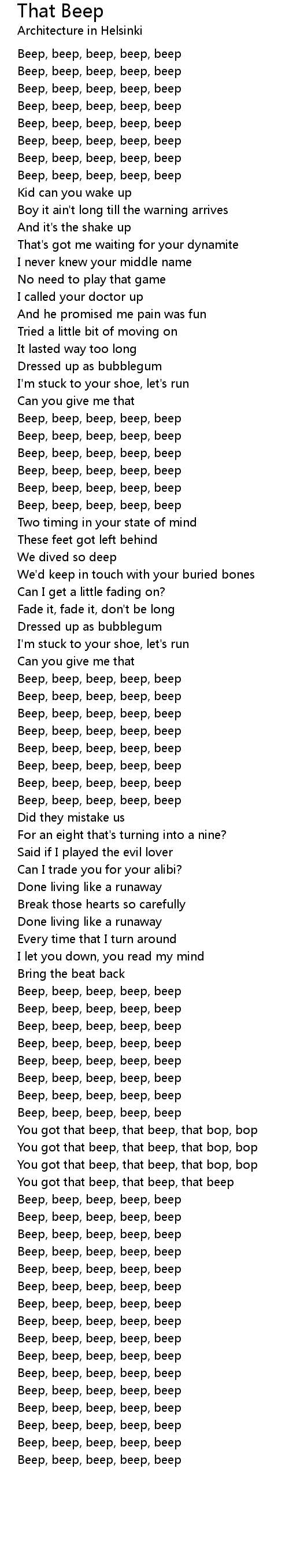 You got that beep, that beep, that bop, bop |