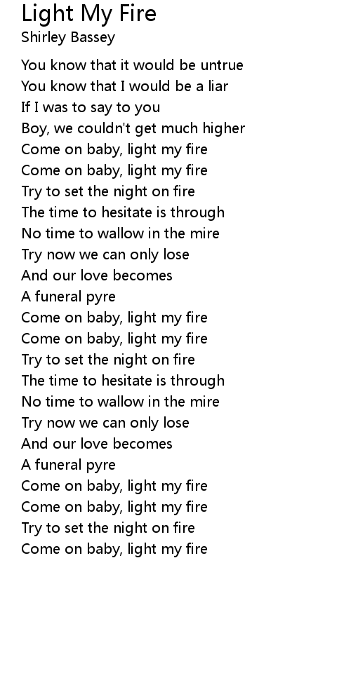 Come on baby, light my fire |