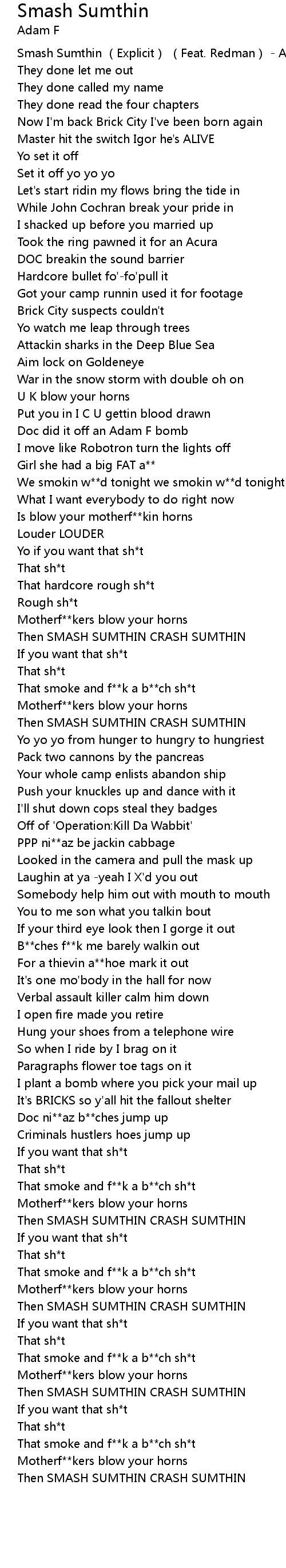 | [00:00.720] | Smash Sumthin Explicit Feat. Redman Adam F |