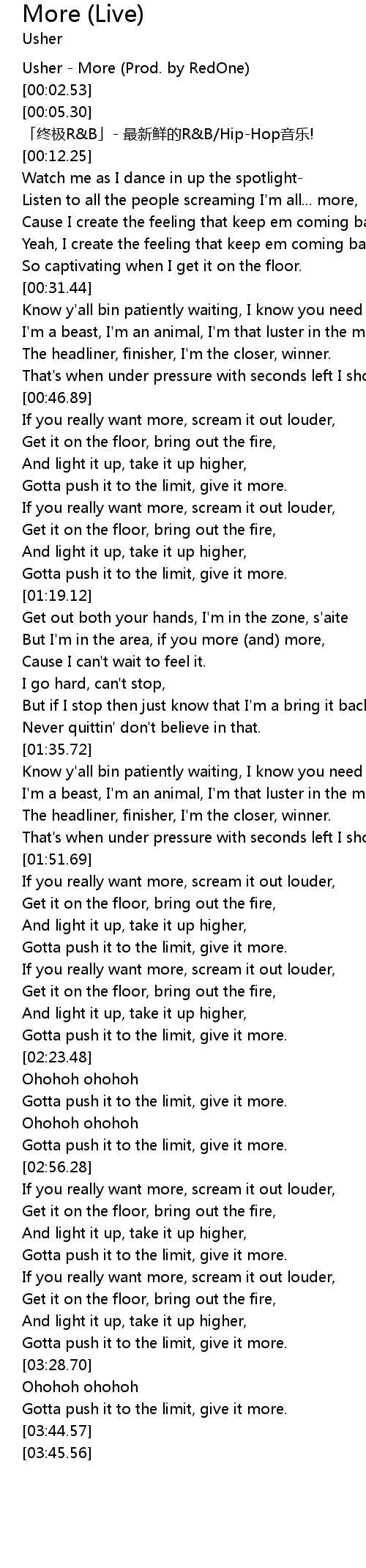| [00:00.31] | Usher - More (Prod. by RedOne) |