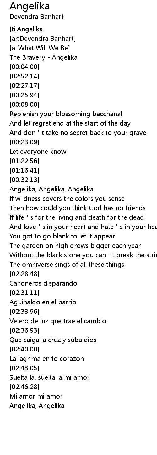 | [02:18.71] | Angelika, Angelika |