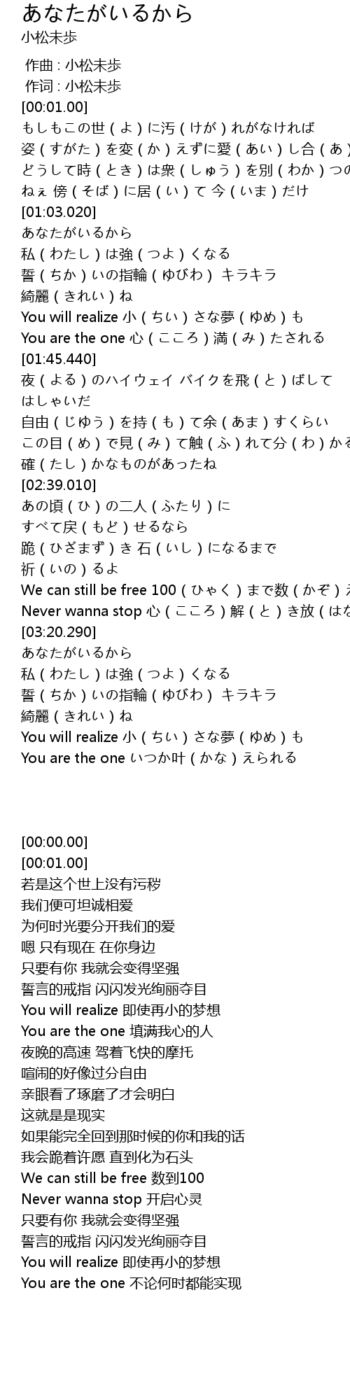 | [04:18.250] | You are the one いつか叶(かな)えられる |