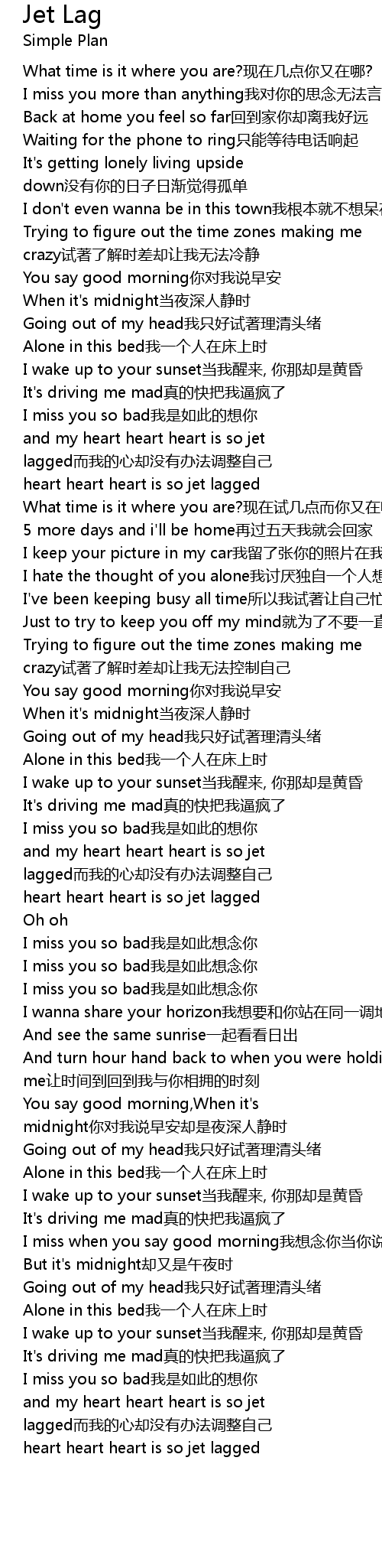 | [01:50:000] | and my heart heart heart is so jet lagged而我的心却没有办法调整自己 |