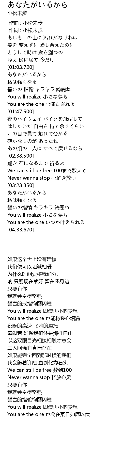 | [00:01.00] | 作词 : 小松未歩 |