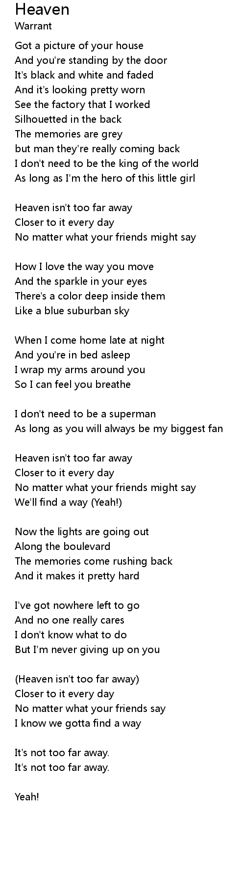 (Heaven isn't too far away) |