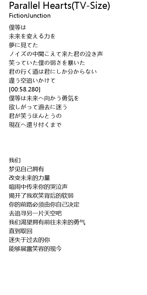 | [00:59.500] | 僕等は未来へ向かう勇気を |