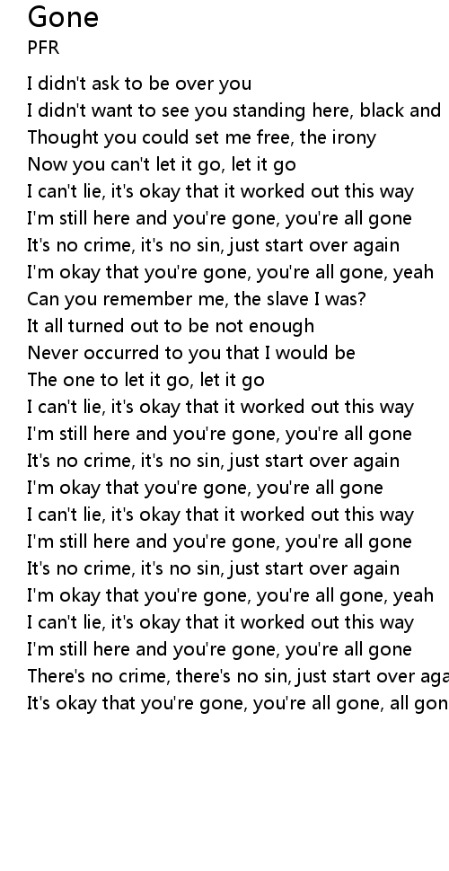 It's okay that you're gone, you're all gone, all gone, all gone, yeah
