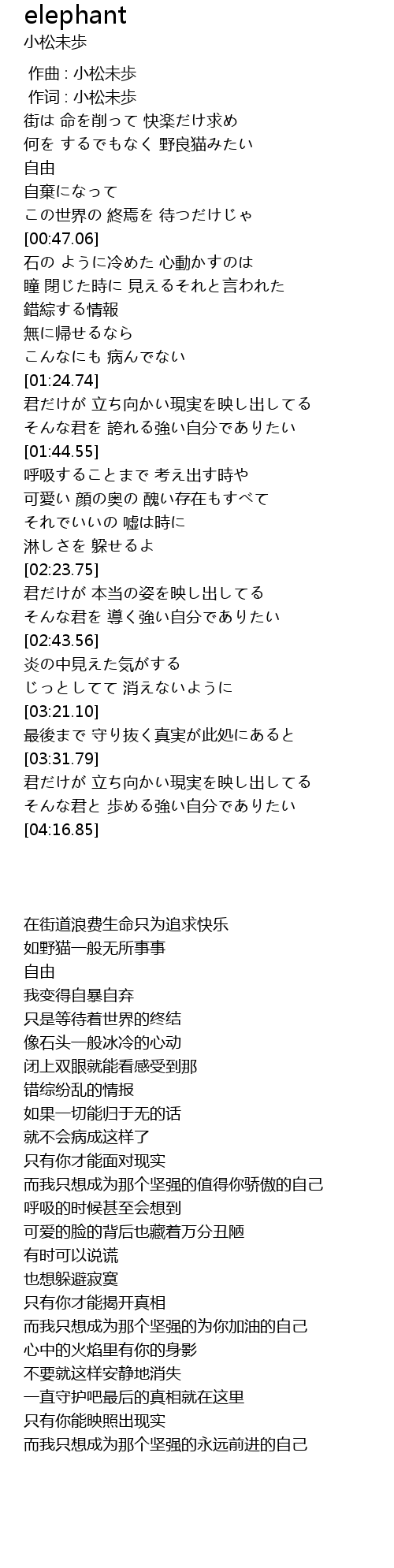 | [00:17.56] | 何を するでもなく 野良猫みたい |
